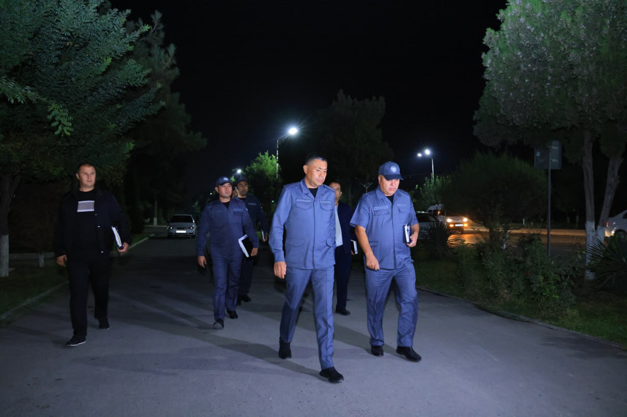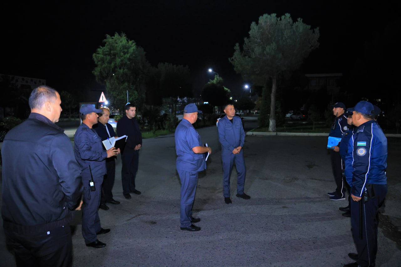 Namangan viloyati Ichki ishlar boshqarmasi boshlig‘i rahbarligidagi ishchi guruh tomonidan viloyatning barcha shahar va tumanlarida ichki ishlar organlari xodimlarining tungi faoliyati, shuningdek, ijtimoiy soha obyektlaridagi xavfsizlik holatini o‘rganish ishlari izchil davom ettirilmoqda.