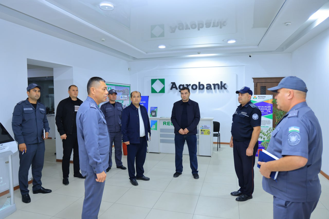 O‘rganishlar davomida tuman markazida xizmat olib borayotgan va “Agrobank” binosini qo‘riqlashga jalb etilgan xodimlar bilan suhbat o‘tkazildi, ularga belgilangan tartibda topshiriq berildi.