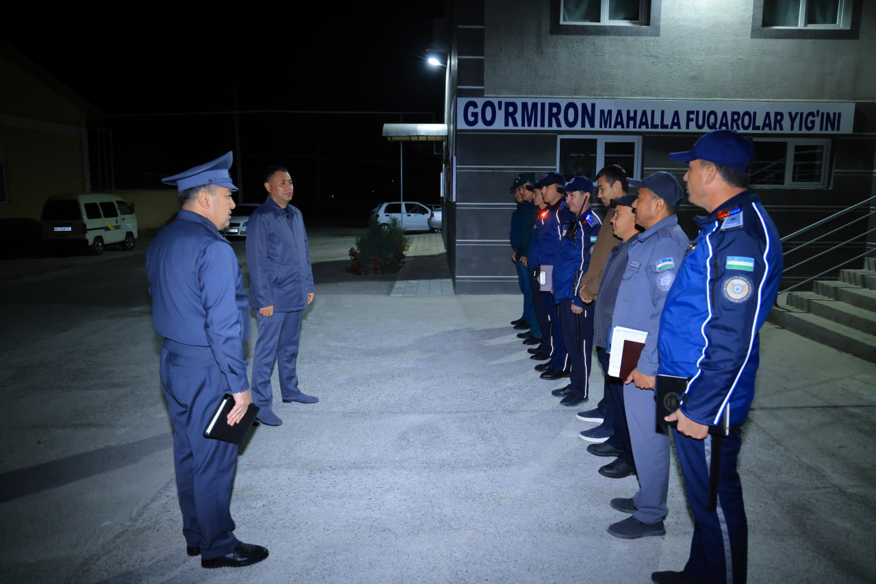Shuningdek, “Go‘rmiron” mahallasi profilaktika inspektori hamda ushbu hududda xizmat olib borayotgan xodimlarning faoliyati o‘rganilib, jinoyatchilik va huquqbuzarliklarning barvaqt oldini olishga qaratilgan ko‘rsatmalar berildi.
