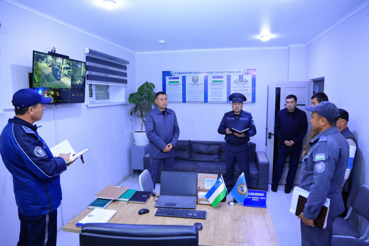 Dastlab, “Bo‘ston” mahallasi hududida tashkil etilgan “Elektron kuzatuv maskani” faoliyati o‘rganilib, mazkur yo‘nalishda xizmat olib borayotgan tungi naryad xodimlariga yo‘riqnoma o‘tkazildi. Ularga mahallalarda xavfsiz muhitni mustahkamlash, huquqbuzarliklarning oldini olish va fuqarolarning tinchligini taʼminlash bo‘yicha aniq topshiriqlar berildi.