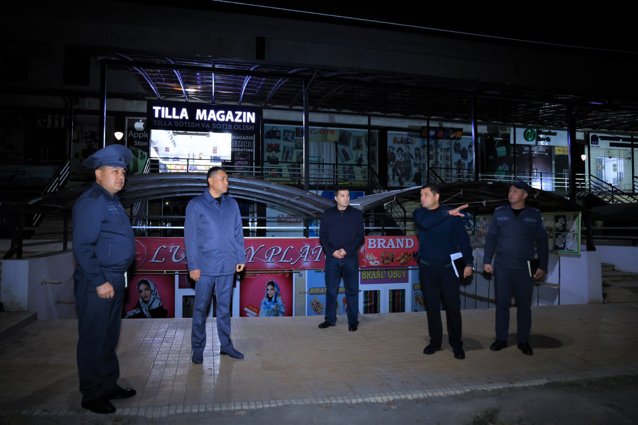 Bundan tashqari, tuman markazida jamoat xavfsizligini taʼminlash, qo‘riqlovga olingan obyektlarni nazorat qilishga jalb etilgan xodimlar va bozor hududida joylashgan avtoturargoh faoliyatini o‘rganish ishlari ham amalga oshirildi. Shu bilan birga, aholi gavjum joylarda fuqarolarning xavfsizligini taʼminlash, transport vositalari harakatini tartibga solish va tirbandliklarning oldini olish bo‘yicha masʼul xodimlar zimmasiga tegishli vazifalar yuklatildi.