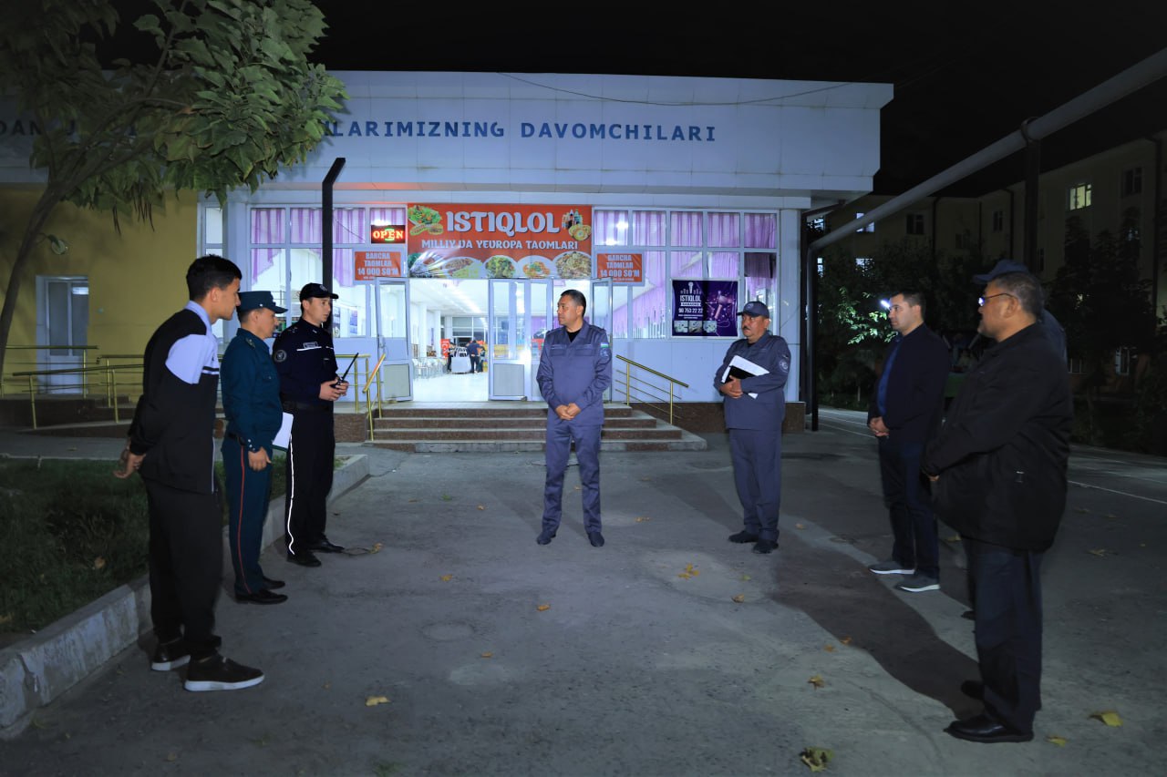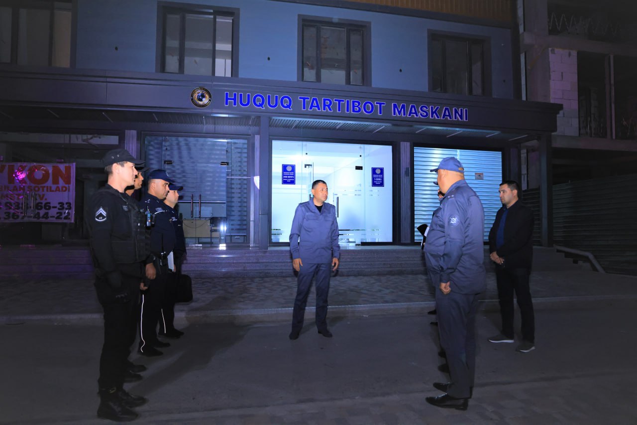 Шунингдек, «Обиҳаёт», «Нурафшон», «Байналминал», «Равнақ» ва «Даштбоғ» маҳаллаларига хизмат кўрсатувчи 1-сон “Ҳуқуқ-тартибот маскани” ходимларининг тунги фаолияти ўрганилиб, жиноятчиликнинг олдини олиш, маҳаллаларда хавфсиз муҳитни мустаҳкамлаш ва фуқаролар билан ишлаш самарадорлигини янада ошириш бўйича топшириқлар берилди.