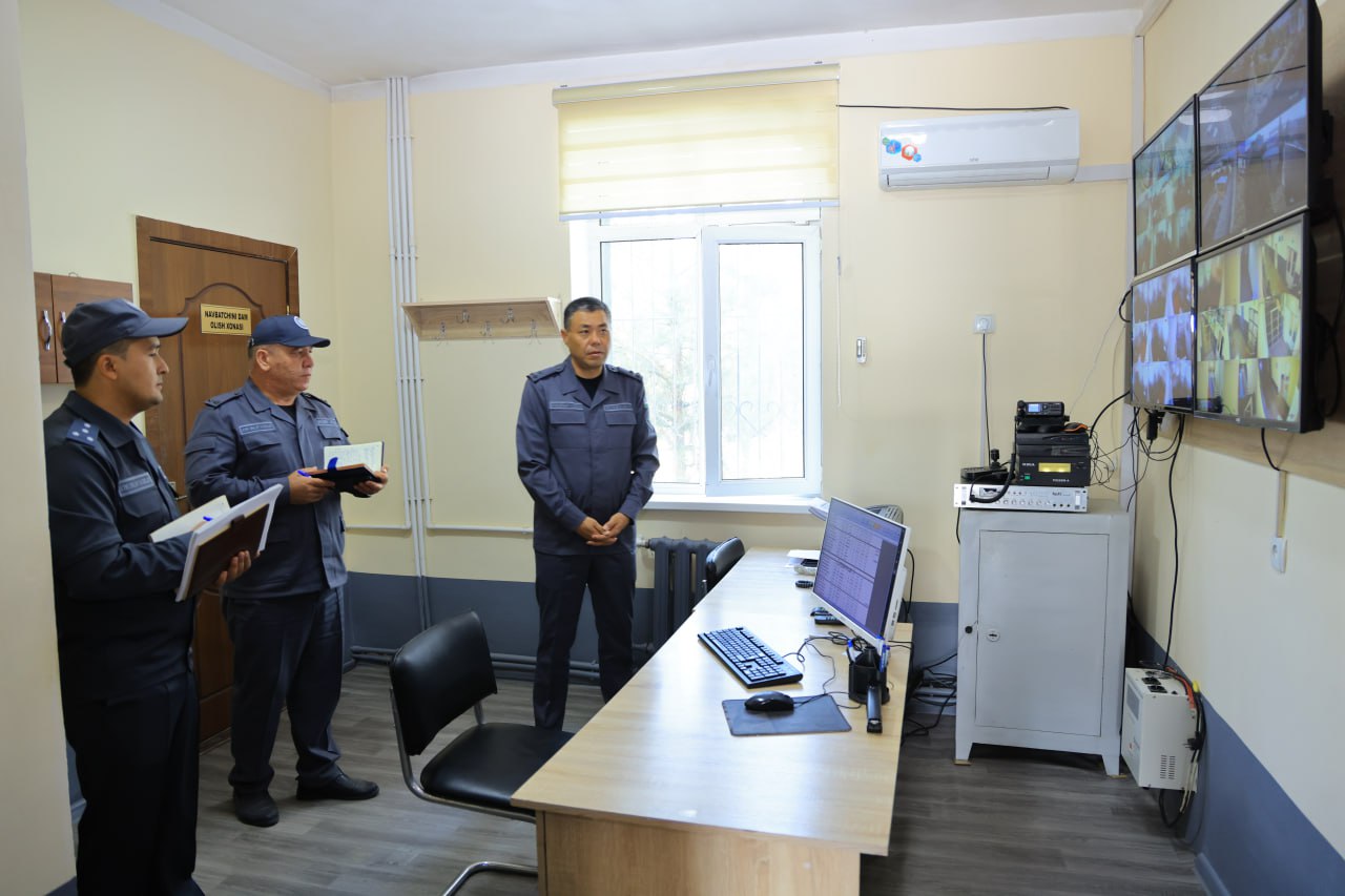 Шунингдек, ўрганиш ишлари Жамоат тартибини сақлаш бошқармасининг Махсус қабулхонасида давом эттирилиб, у ерда хавфсизлик чора-тадбирлари, сақланаётган шахслар учун яратилган шарт-шароитлар ҳамда куз-қиш мавсумига тайёргарлик ҳолати ўрганилди.